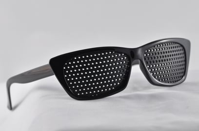 Las gafas de agujeros también se llaman gafas reticulares, estenopeicas, rasterbrille o pinhole. Están formadas por una parrilla negra de agujeros, y no tienen ninguna graduación.